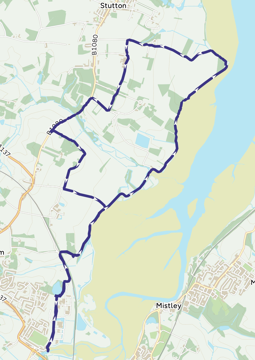 A refreshing 9.8 miles stroll from Cattawade to Stutton corner and back.