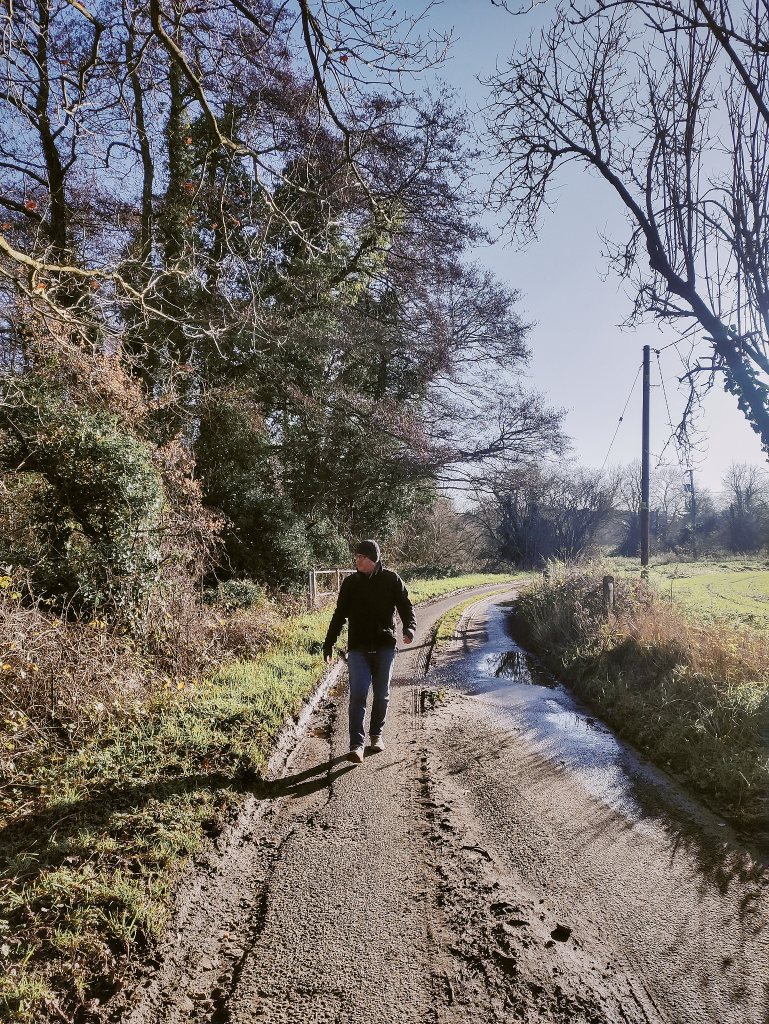 The walk started with a crisp, white frost clinging to the hedgerows, but it didn’t stay “neat” for long. As the temperature rose and the sun broke through the clouds, the ground gave way to some serious Christmas mud.