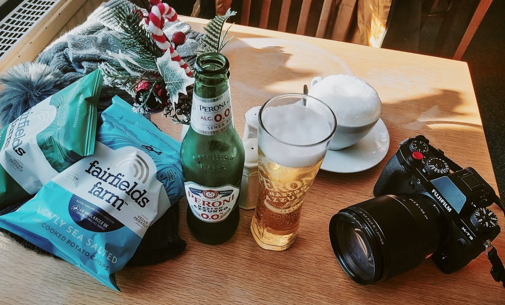 No Christmas walk is complete without a finish line. We pulled into the local pub, boots thoroughly caked in Suffolk clay, for a well-earned drink. There’s nothing quite like the first sip of a festive pint (or a glass of something sparkling) paired with a couple of bags of classic pub crisps. It was the perfect way to toast to the day before heading home for the big roast.