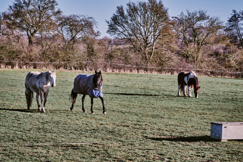 We navigated the slushy paths with the kind of focus usually reserved for carving the turkey. Along the way, we weren’t the only ones out enjoying the fresh air; we passed several horses looking sturdy in their winter rugs, puffing steam into the cold air as they watched us pass.