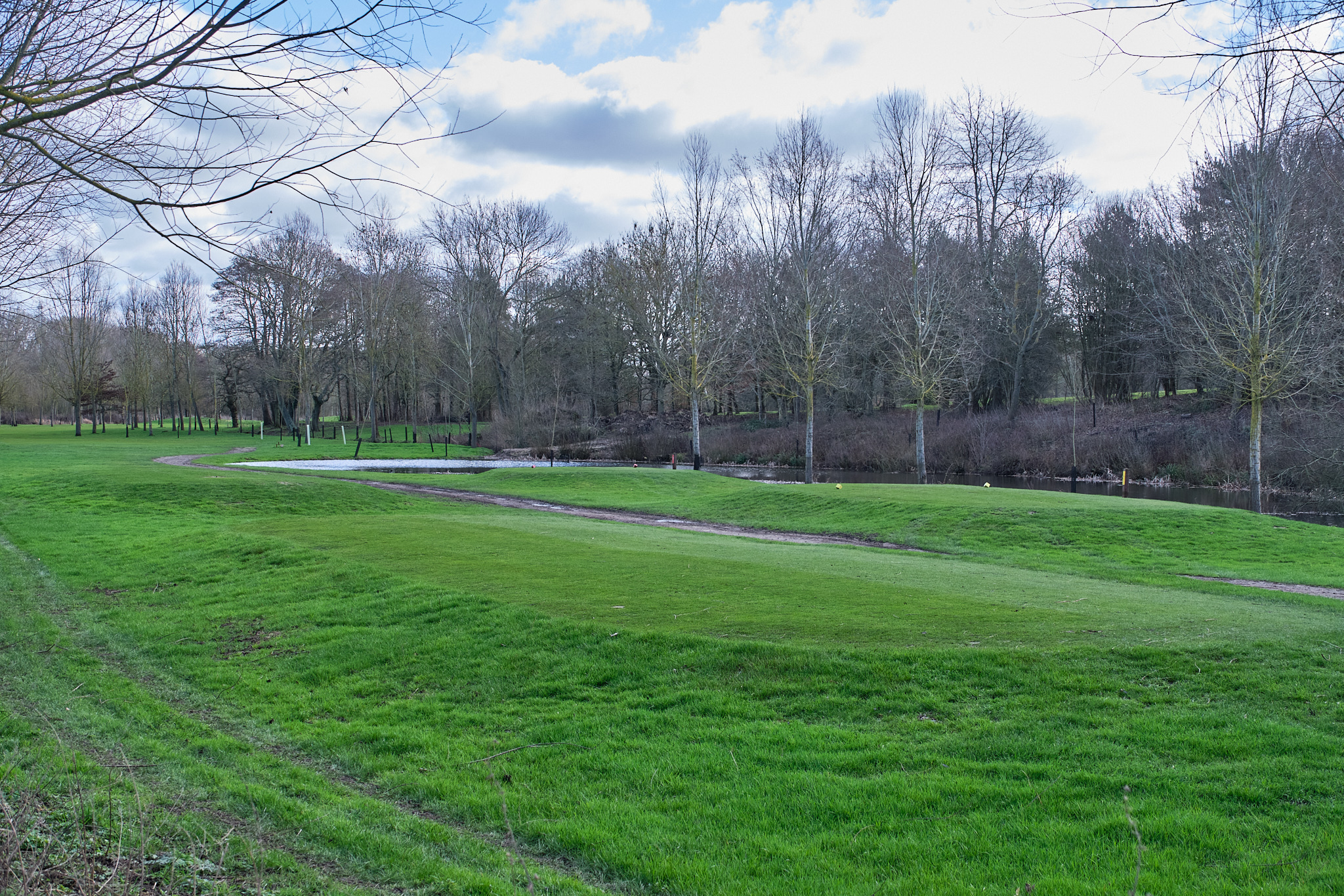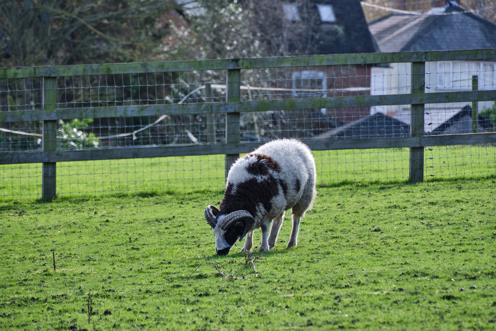 Venturing through muddy trails, we made our way down towards the river. The path behind the golf club revealed a lively scene: wild ducks gliding across the water, bluetits flitting among the trees, and even a muntjac deer quietly observing us from the undergrowth. On the nearby fields, rams grazed peacefully, embodying the rural charm of the area.