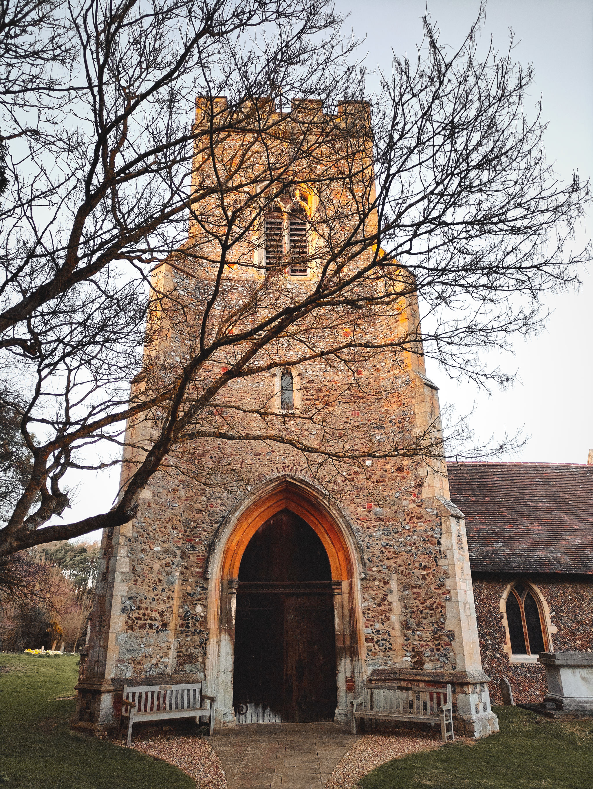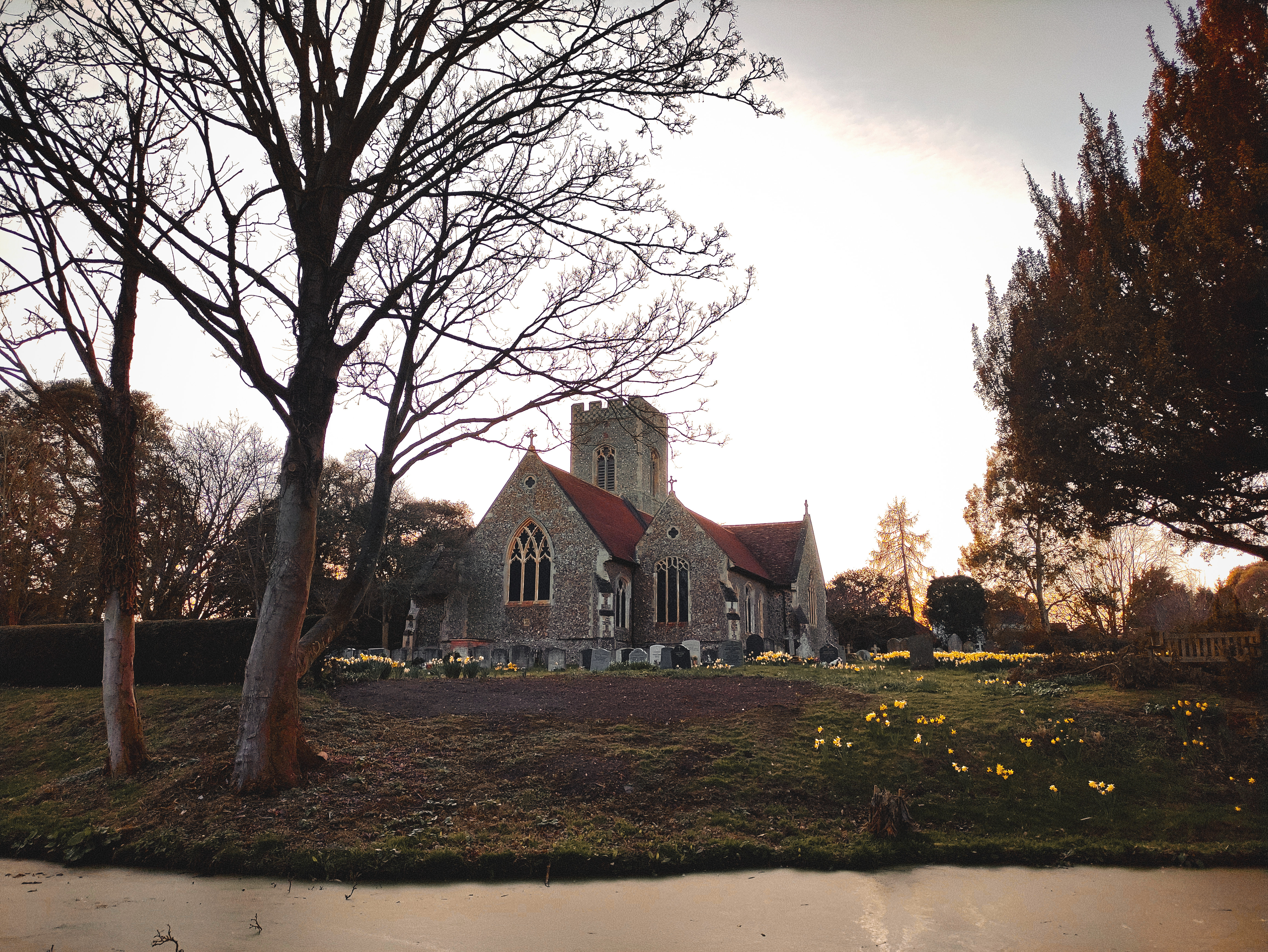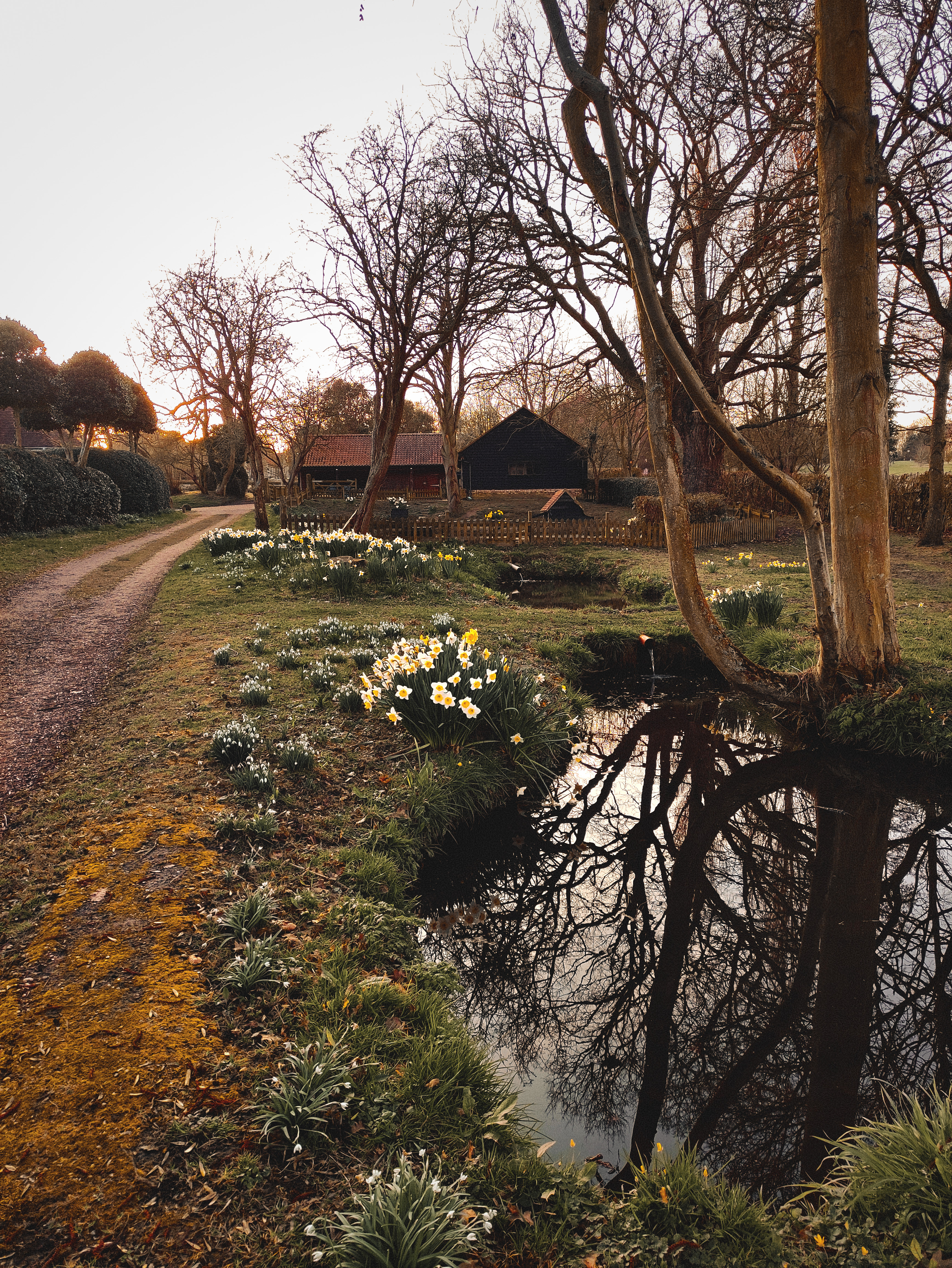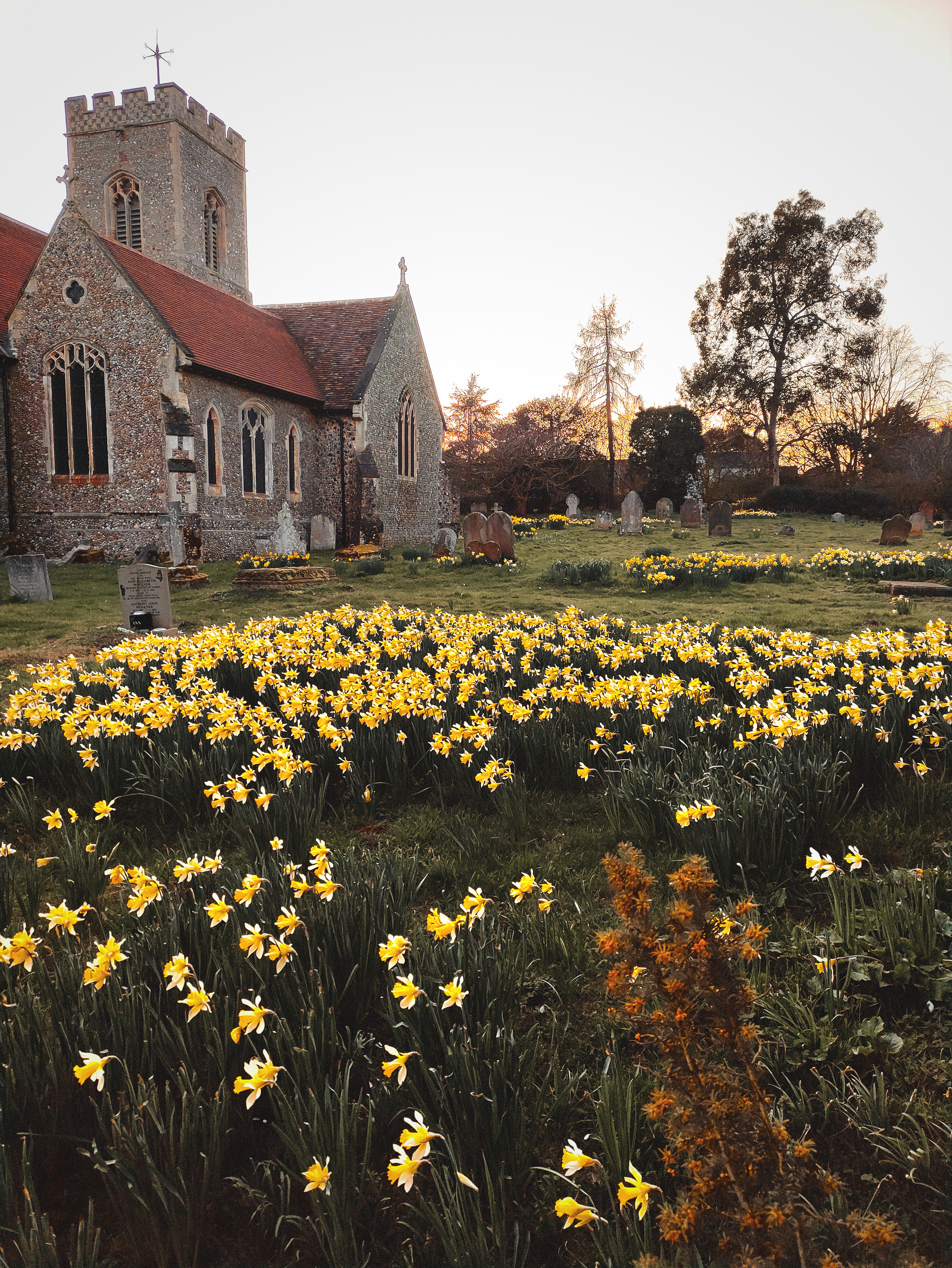 Today’s late afternoon walk at Lower Holbrook was truly enchanting. We began our journey at the local church, where we were delighted to see daffodils in full bloom and a flurry of playful squirrels darting through the trees. Their lively antics added a joyful touch to the peaceful setting.