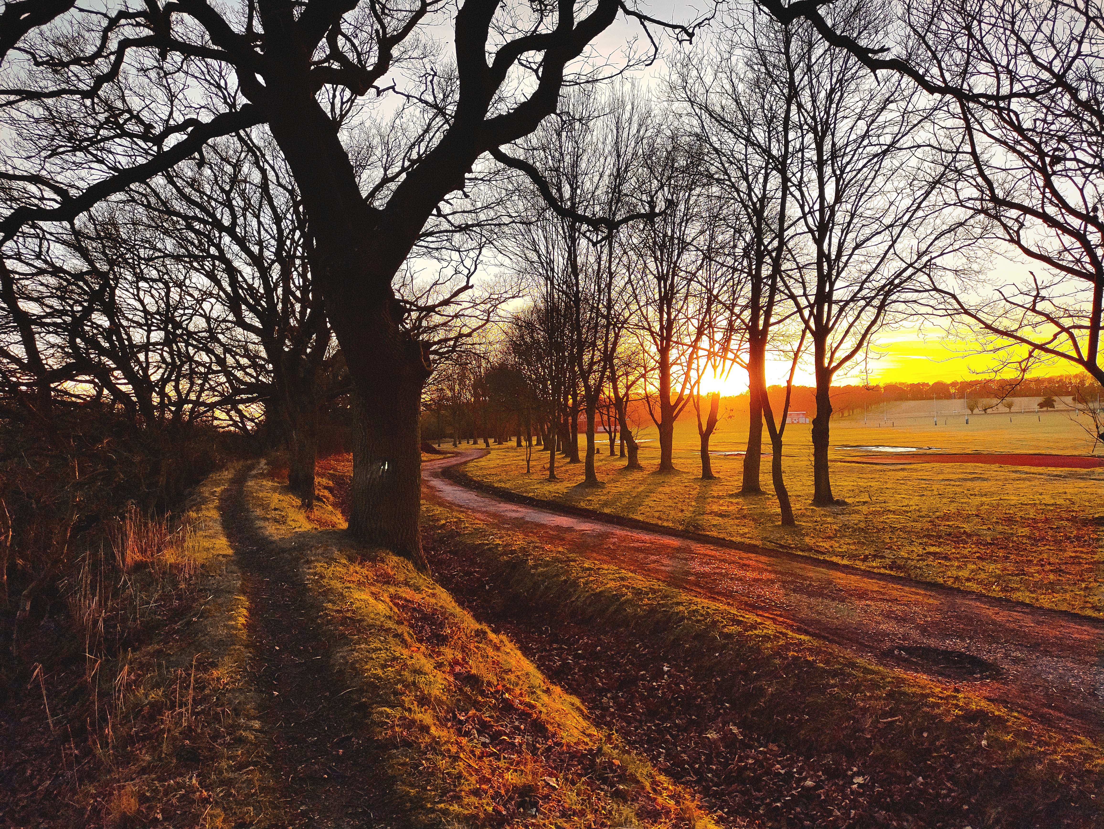 Continuing along the trails, we made our way down to the riverside. Despite the chilly, windy afternoon, the scene was nothing short of breathtaking. A mesmerizing sunset painted the sky in stunning golden hues, casting a warm glow over the landscape and reflecting beautifully on the water.