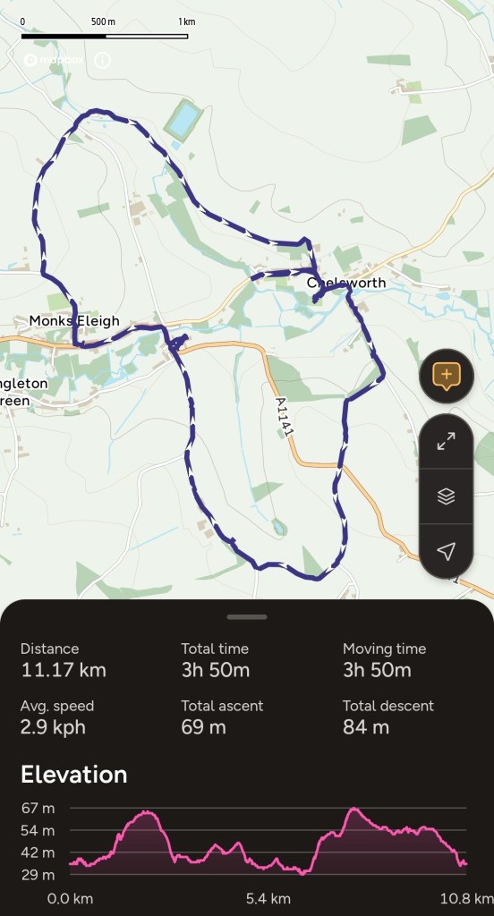 You can’t start a 4-hour walk on an empty stomach—that’s just basic science. We swung by the Monks Eleigh Village Shop and secured two slices of brownie so thick they could have been used as doorstops. Fuelled by chocolate, we stopped at the church to say our prayers than we passed the Village Hall and headed toward the River Brett.